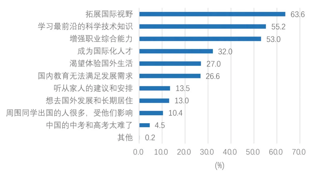 计划出国留学人员的留学目的从单一的学习先进科技知识向充分结合个人成长与社会发展的多元立体化需求转变。一方面,发达国家的先进科技和丰富的管理经验仍然是吸引留学人员的主要动力之一。另一方面,中国自主创新能力不断提升,科技水平不断提高,企业全球化发展、人才国际化需求、体验不同文化和生活方式等也成为出国留学的重要驱动力。