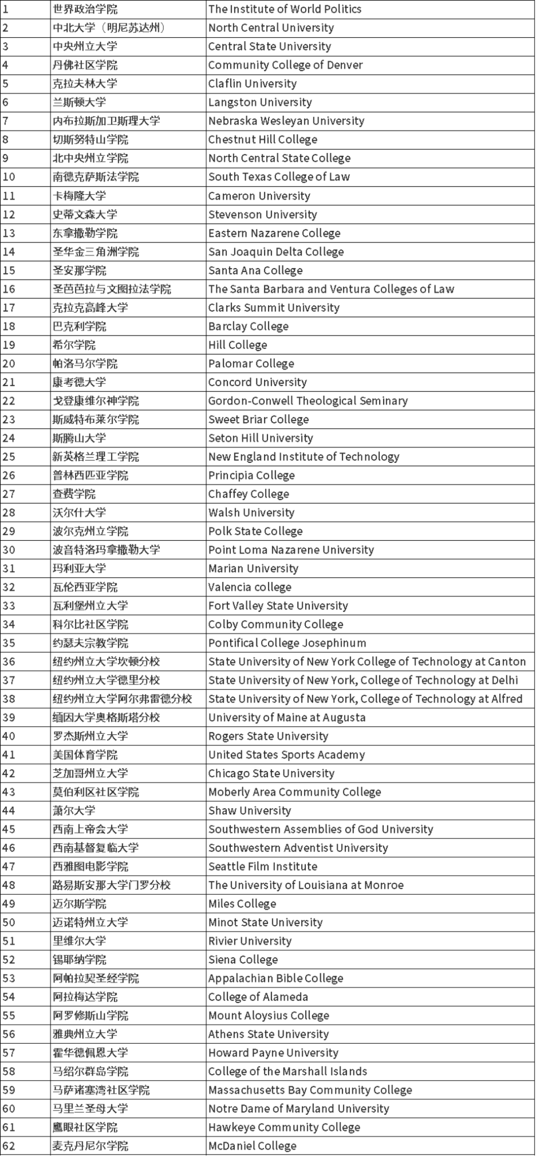 ✅ 美国被移除院校62所: