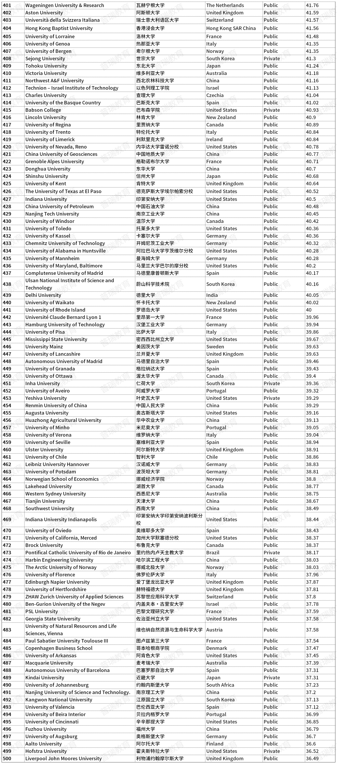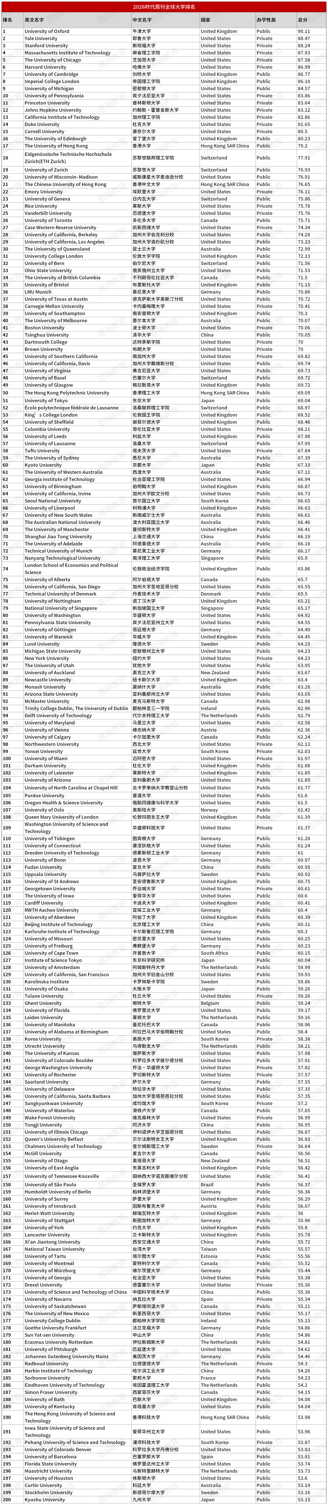 中国香港地区高校在榜单中表现十分亮眼。香港大学位列全球第17名,香港中文大学紧随其后排名第20名,香港理工大学也成功跻身前50。