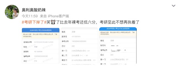 消息一出,不少“烤鸭们”纷纷自嘲“考研下岸了”: